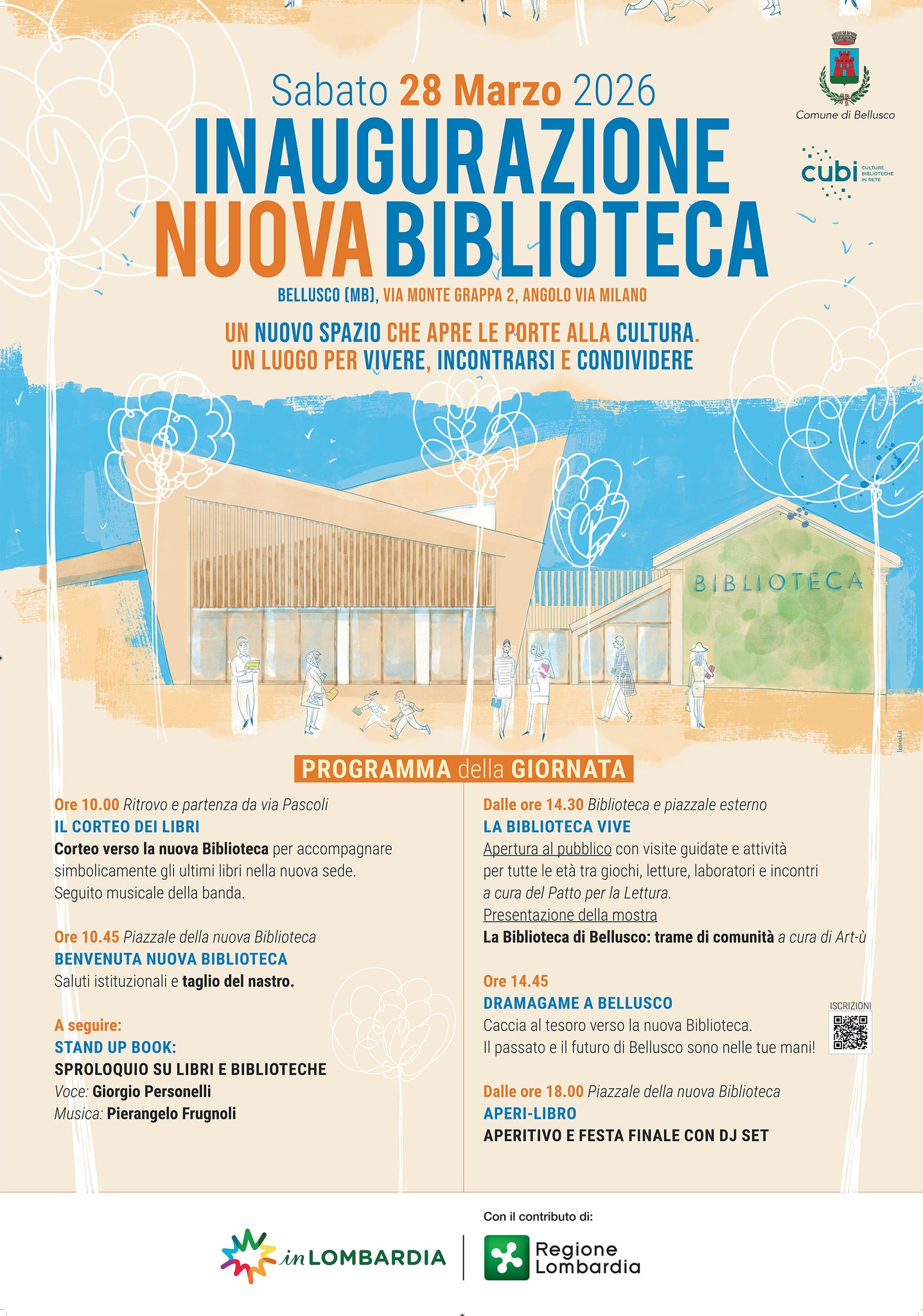 Sabato 28 marzo 2026 inaugureremo la nuova Biblioteca di Bellusco, un nuovo spazio dedicato alla cultura, alla lettura e all’incontro per tutta la comunità.